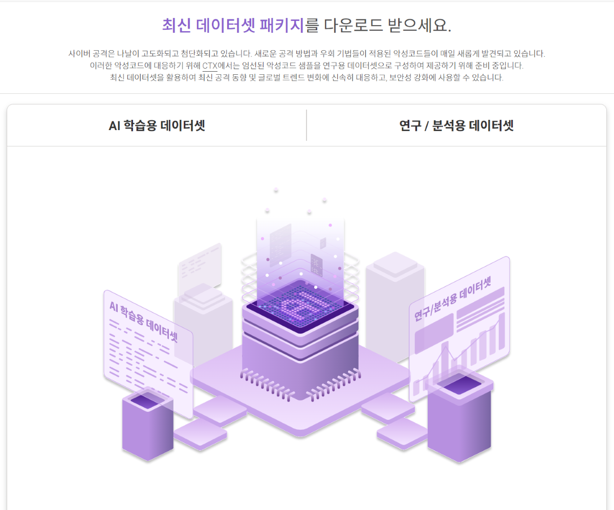 - AI 학습 및 연구/분석 위한 데이터셋, 인텔리전스 서비스 CTX서 제공