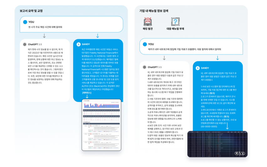 그림 4, 생성형 AI 기반 구축형 사이버보안 모델 SANDY의 예시 자료